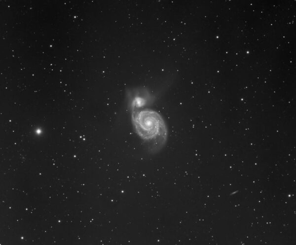 Whirlpool Galaxy (M51): Located near the Big Dipper in Canes Venatici, this interacting pair displays distinct spiral arms seen with a 8" telescope. The galaxy and its companion, NGC5195 are easily observed at mags. 8.4 and 10.4