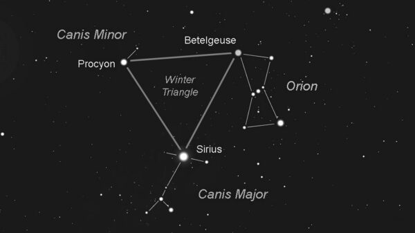 There a two winter asterisms that are part of this trip through the winter star fields, they are The Winter Triangle and the larger Winter Hexagon. These will help you navigate the Winter Sky.