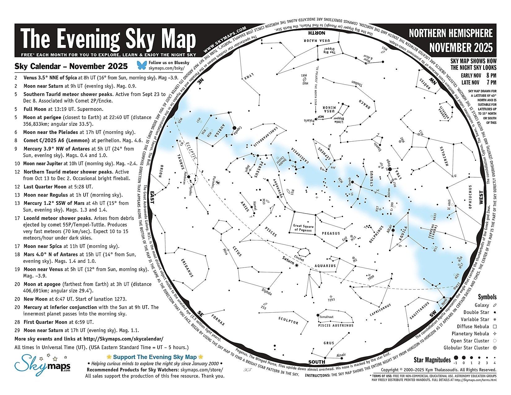 Moon Phase: A waning crescent moon will not interfere with viewing, as the new moon is on November 20.